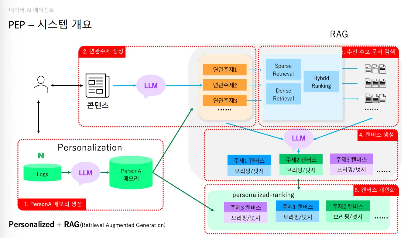 사용자의 행동이 담긴 Raw Data를 바탕으로 ShortTerm Memory, LongTerm Memory를 구성한다. 이 과정에서는 사용자의 액션을 수집하고 메모리화하기 위한 자체 플랫폼인 Dexter를 활용한다. 그렇게 수집한 메모리를 활용해서 PEP(Personalized Exploration Partner)라는 AI 에이전트 시스템이 결론적으로 사용자에게 개인화된 정보를 제공하는 플로우인 것 같다. 이 에이전트는 사용자의 명시적 요청 없이도 상황과 맥락을 파악해 프로-액티브하게,, 선제적으로 제안하고 추천하는 에이전트다.