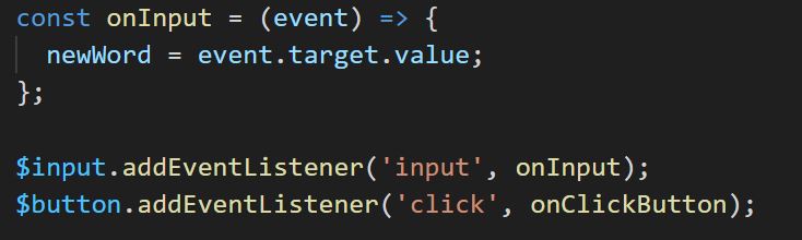 event 객체를 제공해 이벤트와 관련된 정보 얻을 수 있음event.target.value를 넣음. event.target.value 는 이벤트가 발생한 대상 태그 가리킴const 리스너함수 = (event) => {
