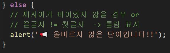 👉 제시어가 비어있는가 ? 또는 입력한 단어가 올바르고 세 글자인가?