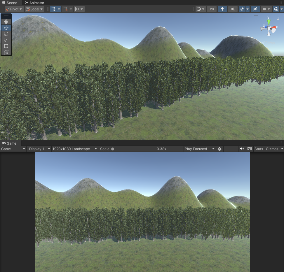 Trerrain으로 만든 지형에 나무 브러시를 만들어 나무를 빠르게 배치해보자.