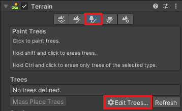 Paint Tree 도구를 선택하고, Edit Tree->Add Tree를 선택한다.