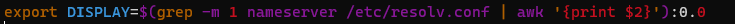 export DISPLAY=$(grep -m 1 nameserver /etc/resolv.conf | awk '{print $2}'):0.0