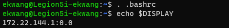 편집을 마치고 저장 후 나와서 .bashrc를 다시로드한 후 DISPLAY값이 잘 설정되었는지 확인합니다. 숫자는 아래와 다를 수 있습니다.