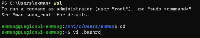 PS에서 wsl terminal로 진입 후 .bashrc를 편집하여 DISPLAY변수에 적절한 값을 설정할 수 있게 변경하겠습니다.