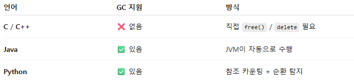 Python, Java은 GC를 통해 안정성을 확보