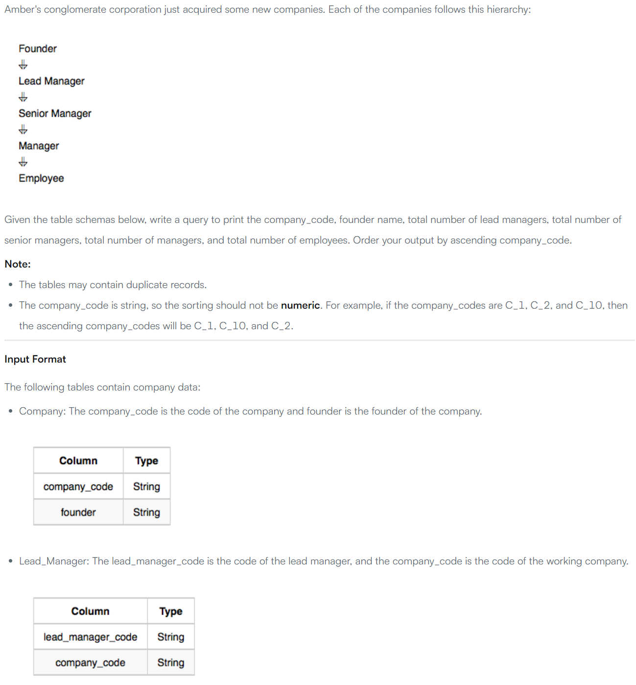 https://www.hackerrank.com/challenges/the-company/problem?isFullScreen=true