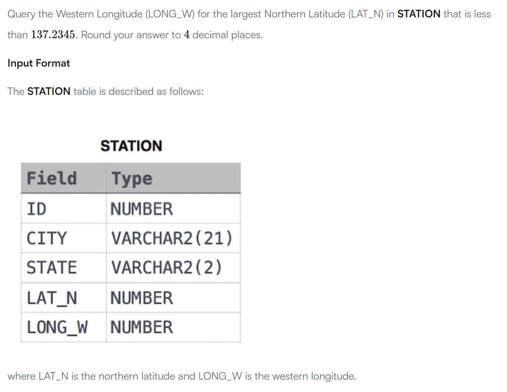 https://www.hackerrank.com/challenges/weather-observation-station-15/problem?isFullScreen=true