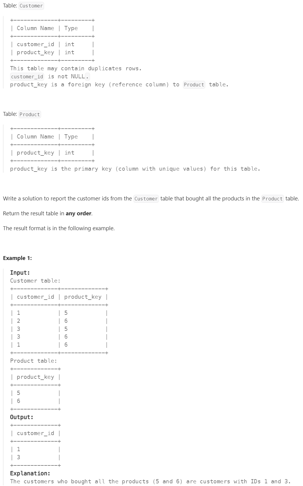 https://leetcode.com/problems/customers-who-bought-all-products/description/