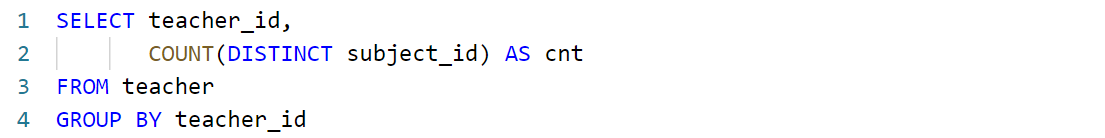 [Leetcode] Number of Unique Subjects Taught by Each Teacher_MySQL