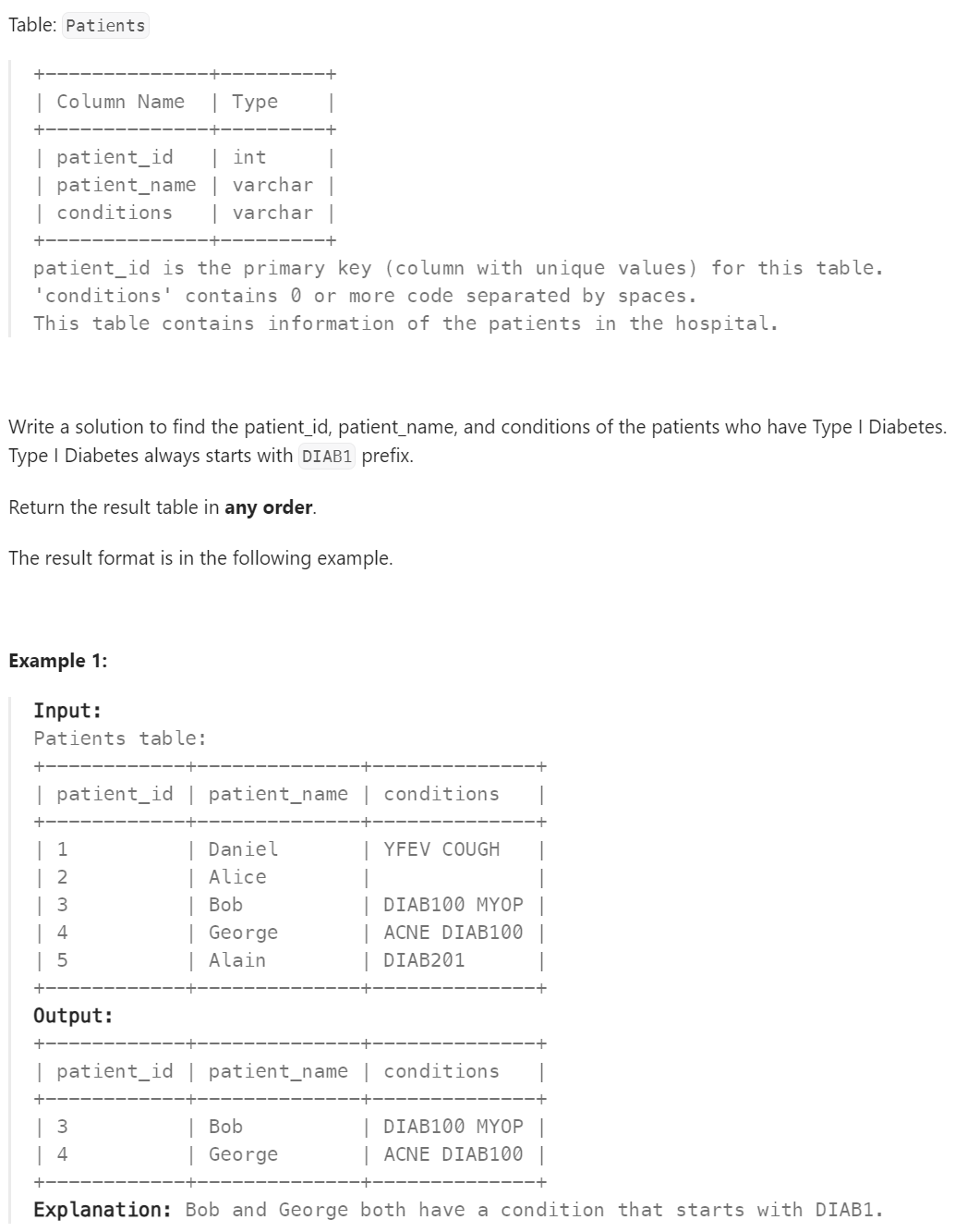 https://leetcode.com/problems/patients-with-a-condition/description/