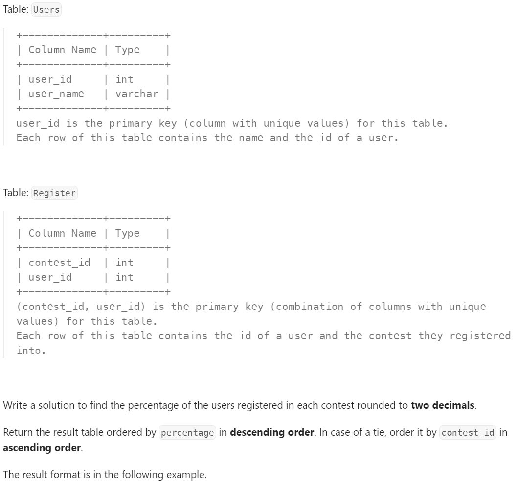 https://leetcode.com/problems/percentage-of-users-attended-a-contest/description/