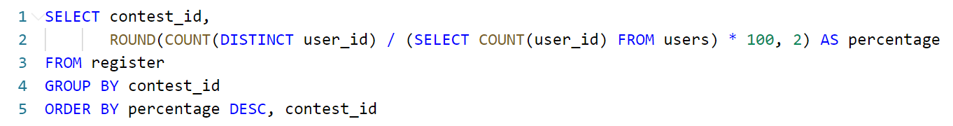 [Leetcode] Percentage of Users Attended a Contest_MySQL