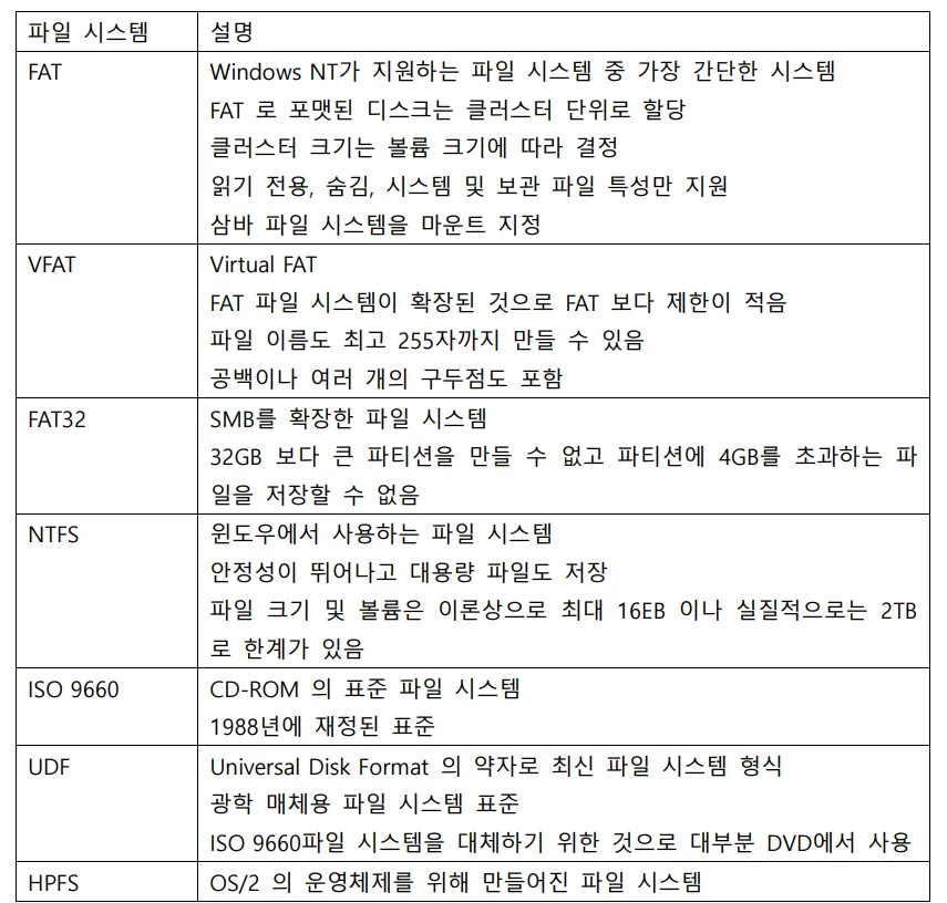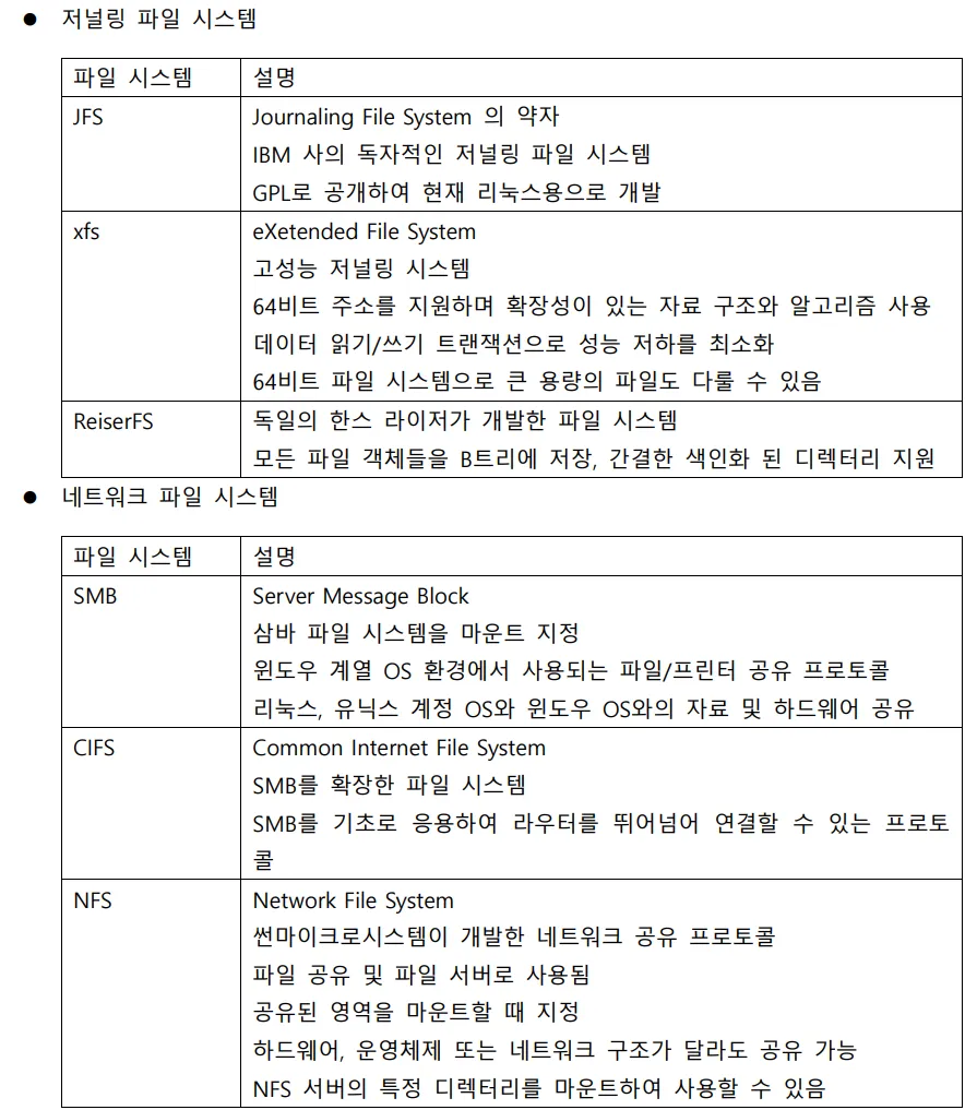 NFS (Network File System) : 네트워크를 통해 파일을 공유할 수 있게 해주는 시스템임. 리눅스나 유닉스 시스템끼리 파일 공유할 때 주로 사용함.