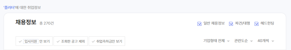 대충 "사람인"에서 플러터만 검색해보더라도 채용이 꽤 많이 되고 있는듯 했다.