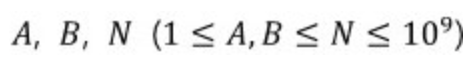 public static int solution(int A, int B, int N) {