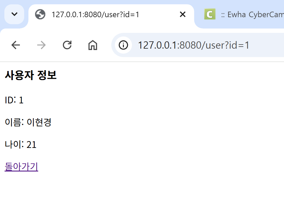 <form method="get" action="/user"> <!-- GET 방식으로 /user에 ID 전송 -->