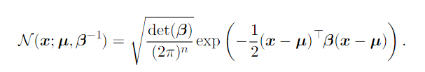 The parameter Σ, is the covariance matrix. To efficiently evaluate the distribution, we can use a precision matrix β instead, which is an inverse matrix of Σ.