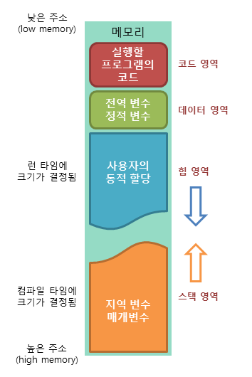 referenct : http://www.tcpschool.com/c/c_memory_structure, https://jinshine.github.io/2018/05/17/%EC%BB%B4%ED%93%A8%ED%84%B0%20%EA%B8%B0%EC%B4%88/%EB%A9%94%EB%AA%A8%EB%A6%AC%EA%B5%AC%EC%A1%B0/