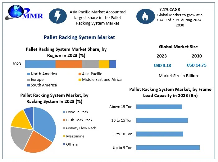 The Pallet Racking System Market, valued at USD 8.9 billion in 2023, is projected to grow at a compound annual growth rate (CAGR) of 7.1%, reaching approximately USD 14.75 billion by 2030.