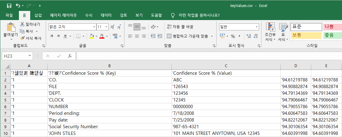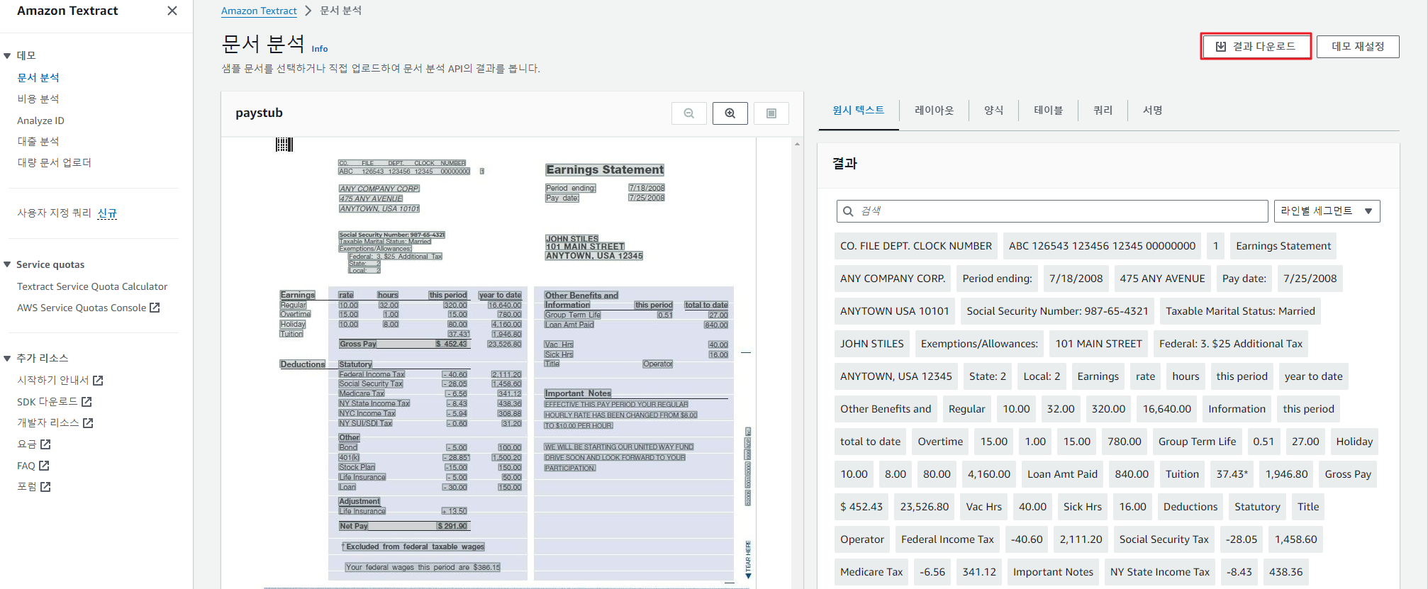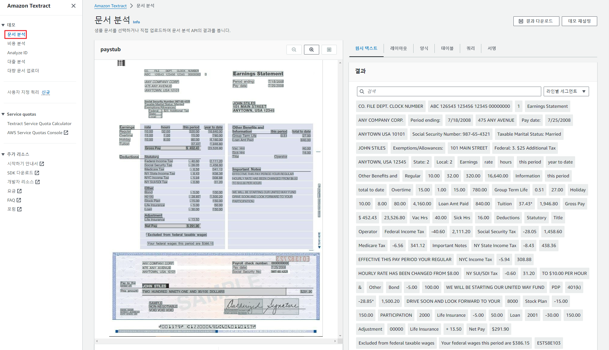 샘플 문서에서 양식 데이터 추출