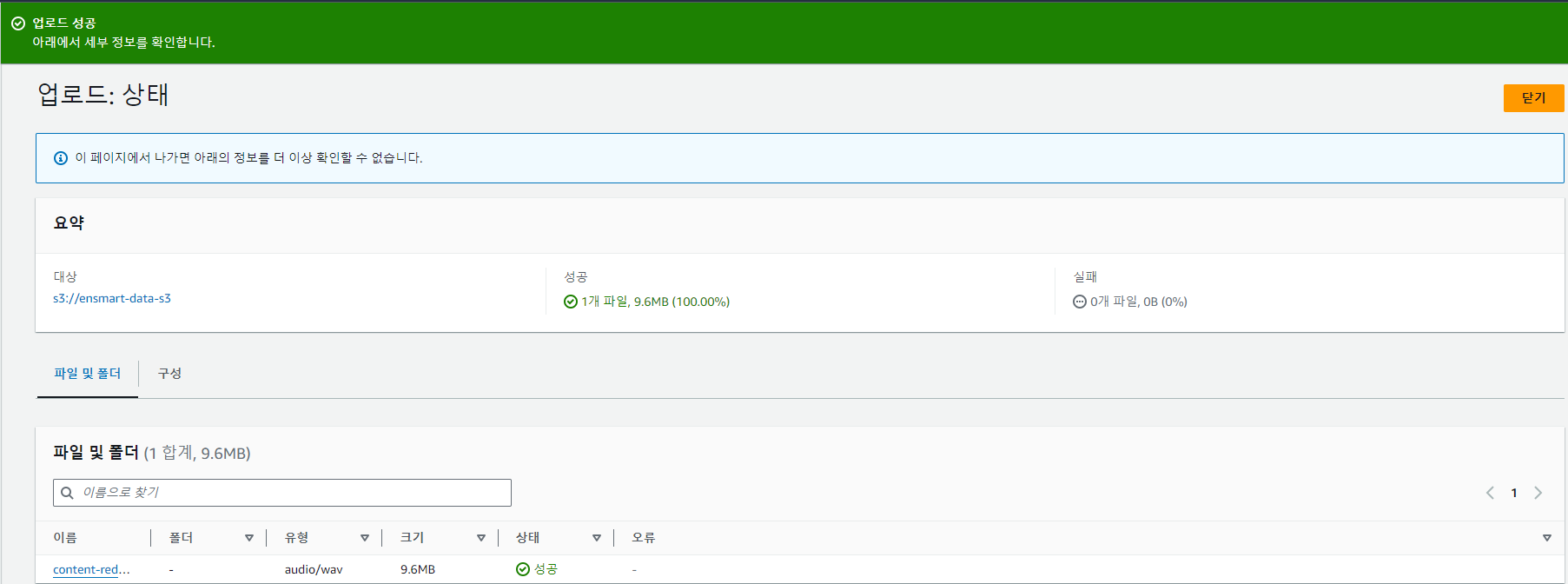 - Amazon S3 버킷을 생성하고 텍스트 변환 오디오 파일을 업로드