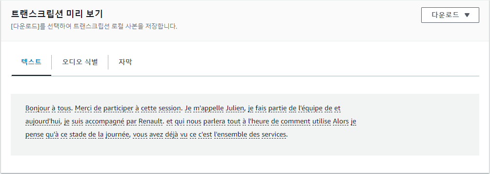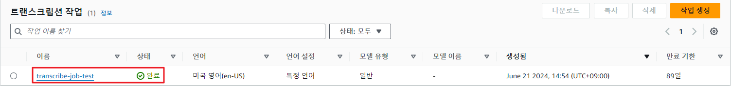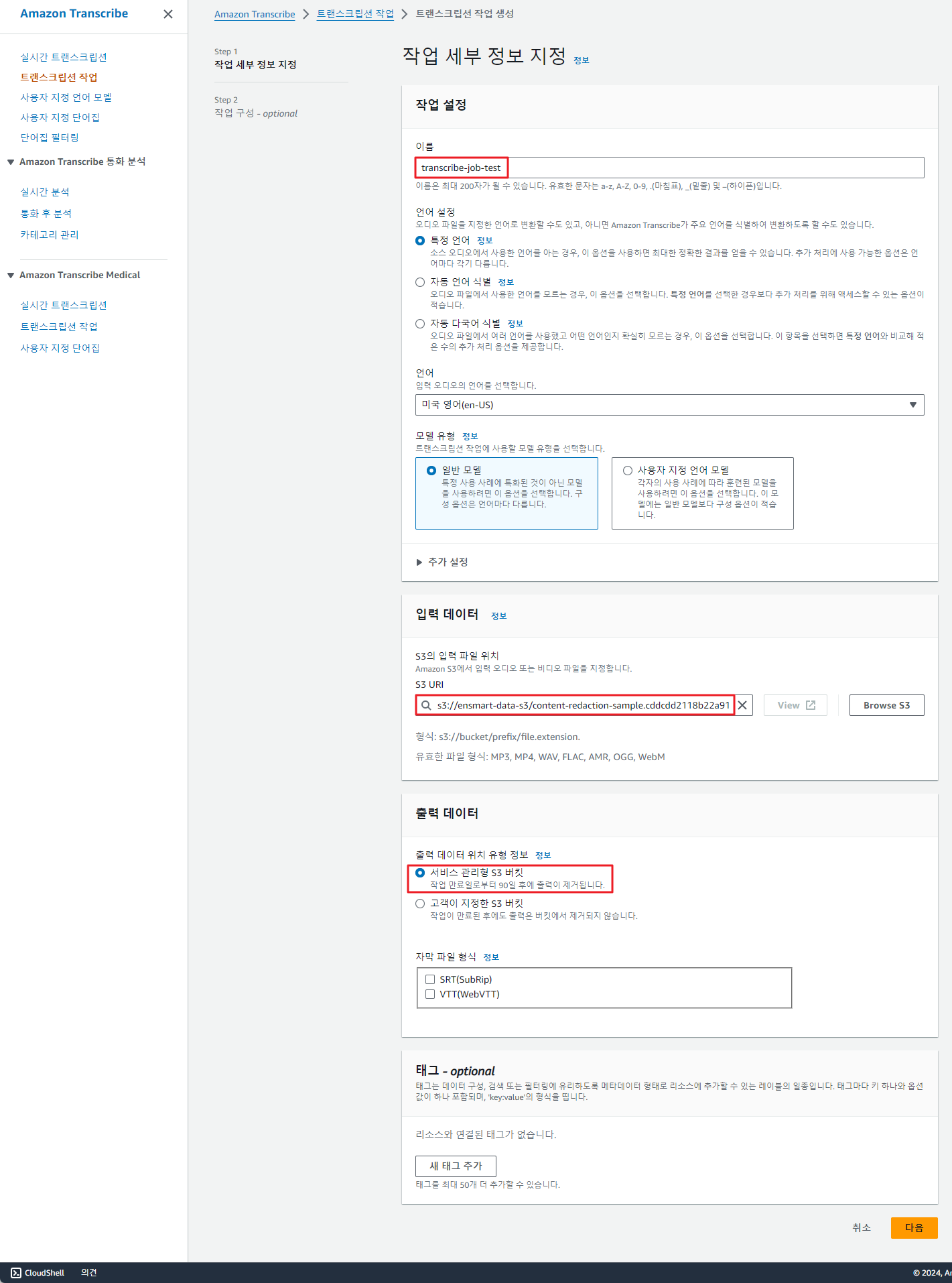 2단계> Amazon Transcribe 콘솔의 트랜스크립션 작업을 실행