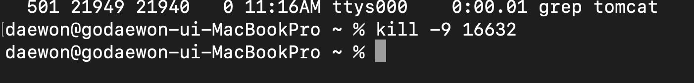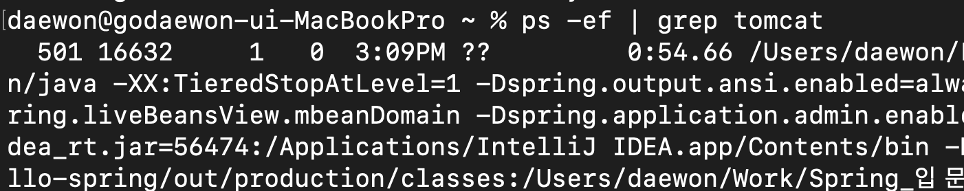 -> 실행 중인 톰캣 프로세스 목록 출력하는 명령어