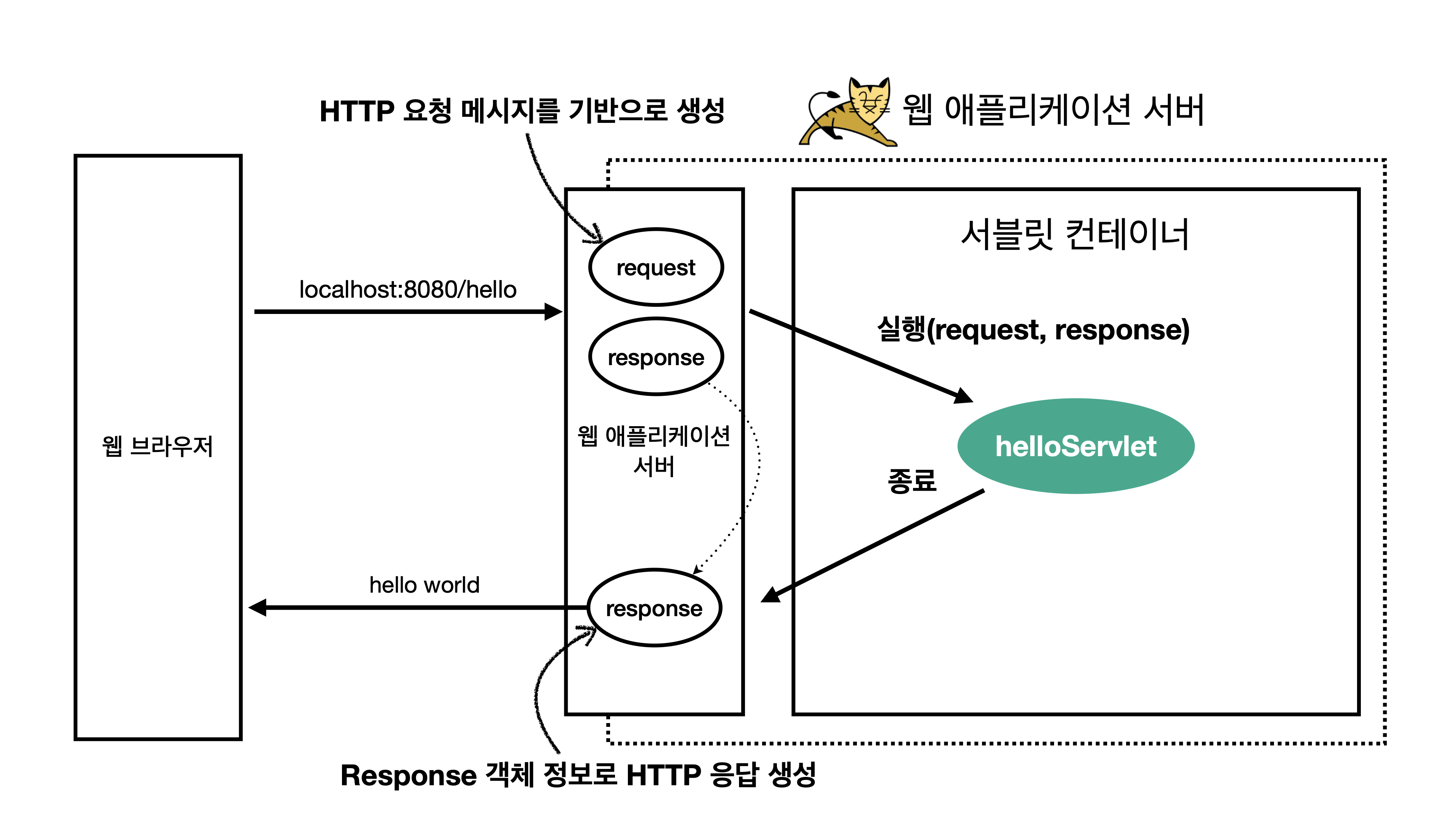 이 모든 것을 Servlet Container, 즉 WAS가 관리하고 담당한다고 할 수 있다.