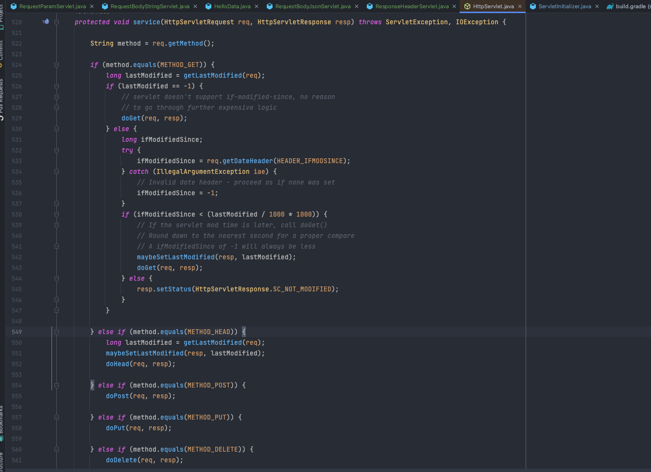 학습 도중 HttpServlet을 상속받아서 servlet을 커스텀할 때 service 메서드만 override하는 이유였다.