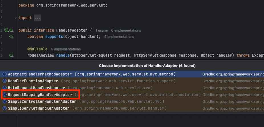 따라서 전술한 이유로, 스프링에서 HandlerAdapter의 구현체로는 RequestMappingHandlerAdapter를 대부분 사용하게 된다.