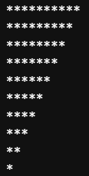 print('*', end='') # 반복문 실행 횟수만큼 *이 입력됨; end=''으로 자동개행을 막았으니 *이 옆으로 이어서 입력된다