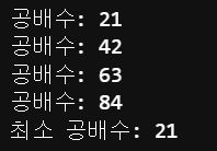 1부터 100까지의 정 수 중 3과 7의 공배수와 최소 공배수를 출력하자.