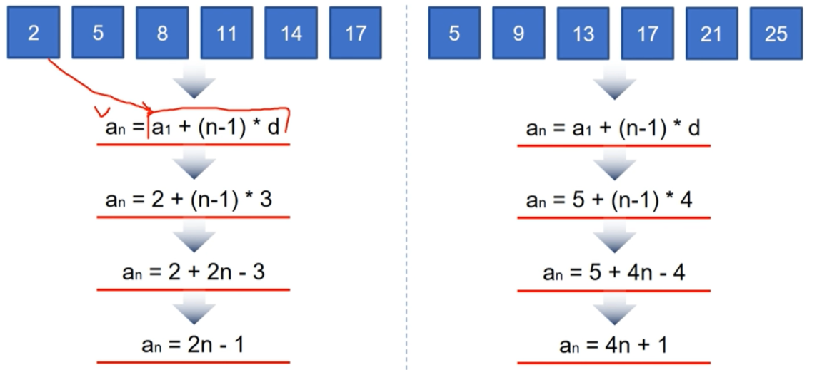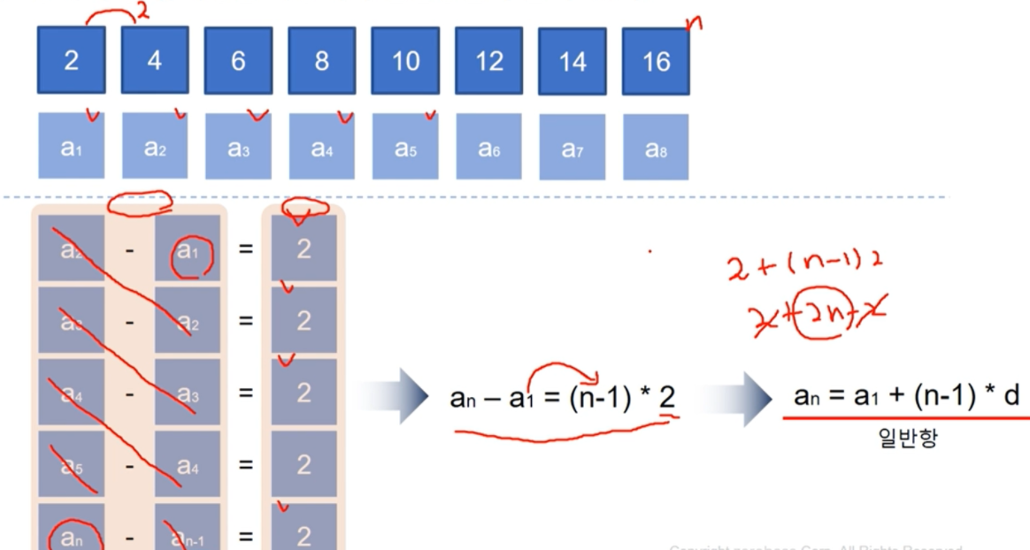 - 차이가 나는 값/수인 2 --> 공차(d) 라고 부른다