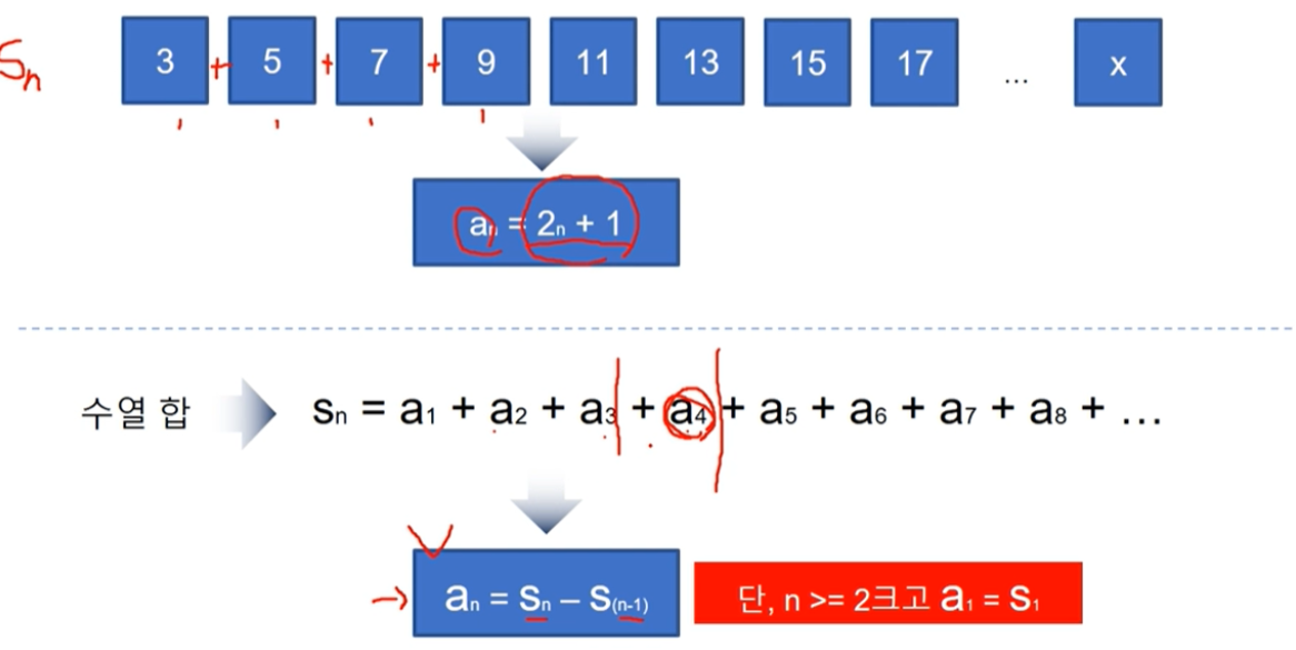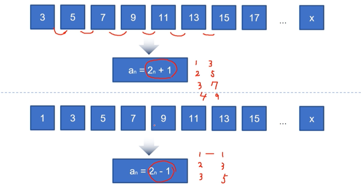 - 2씩 차이/증가하는 --> "두 항의 차이가 2인 등차 수열"