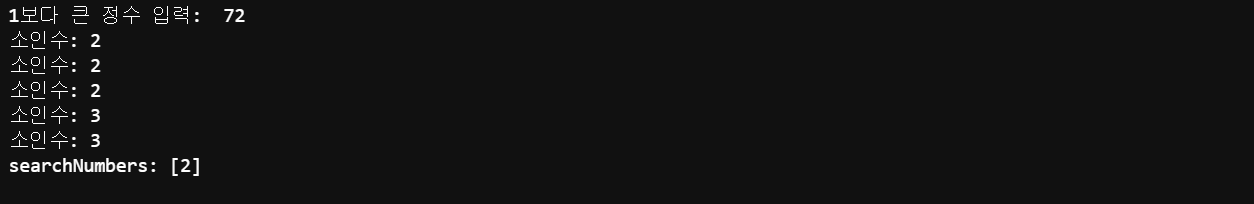 searchNumbers = [] # 이 리스트에 소인수 숫자들을 넣을 건데,