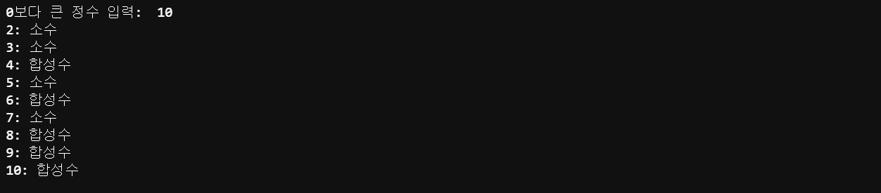 # 이제 1과 자기자신 외에 다른 약수가 존재하는지 아닌지 판단