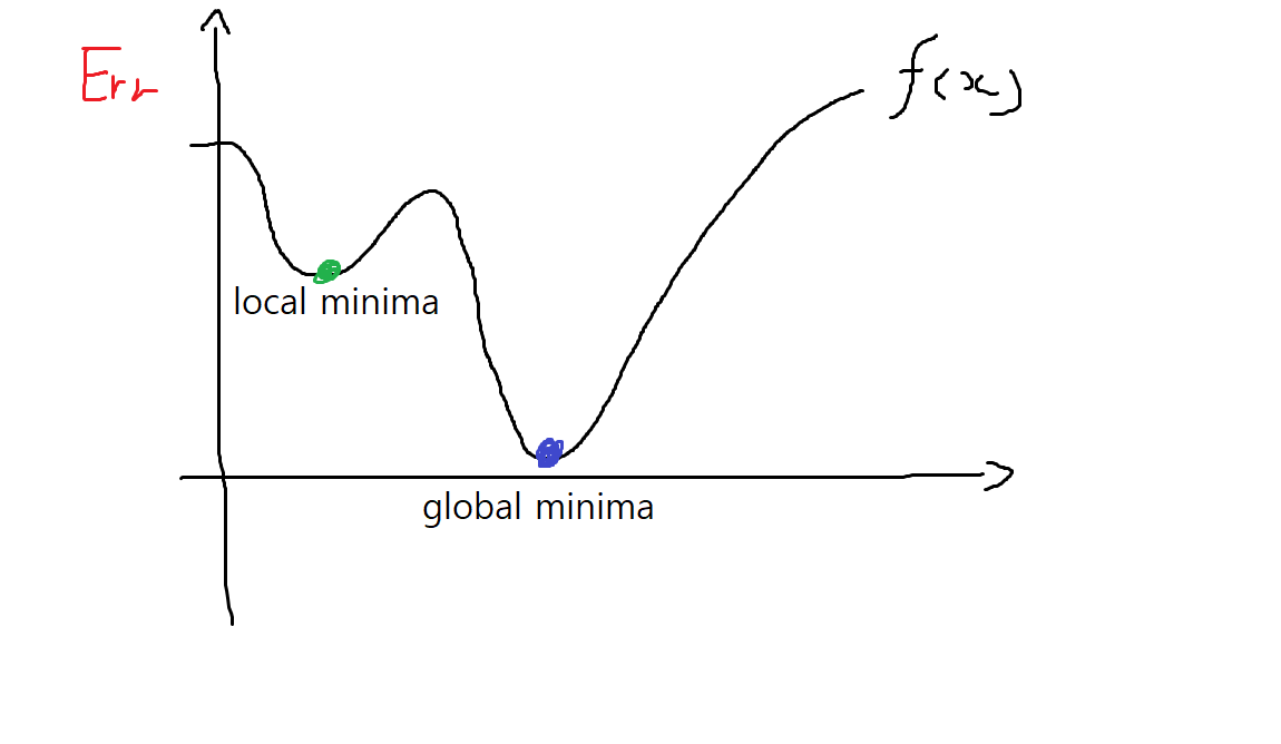 경사하강법으로 찾은 최솟값이 함수의 최솟값이 아닐수도 있습니다.