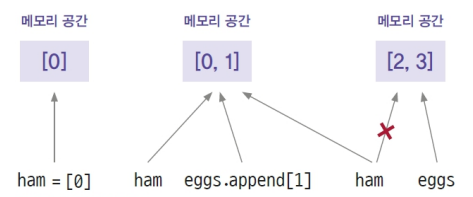 eggs.append(1) # 기존 객체의 주소값에 [1] 추가