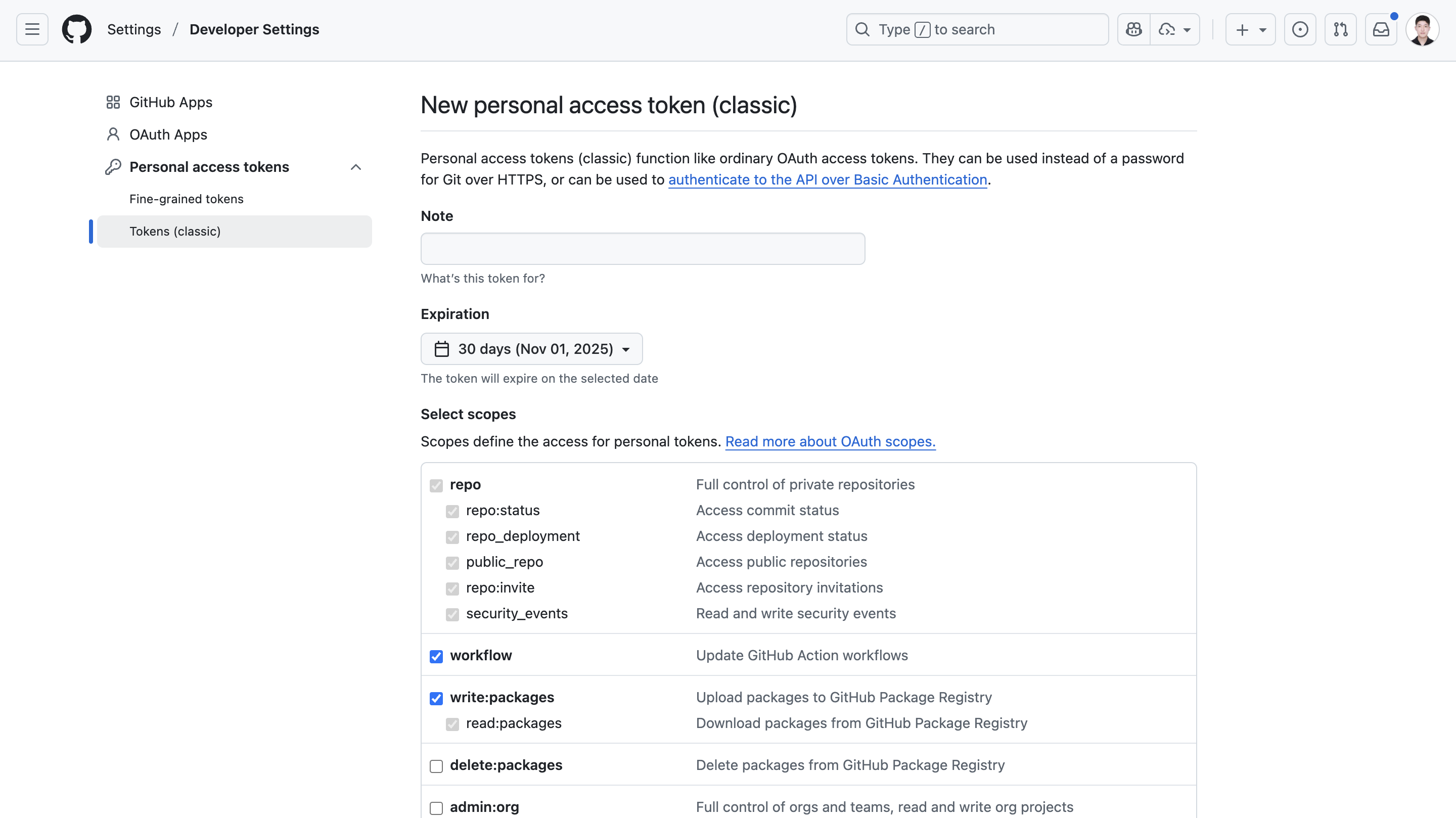 codex에서 github에 접근하기 위한 토큰을 발급한다.