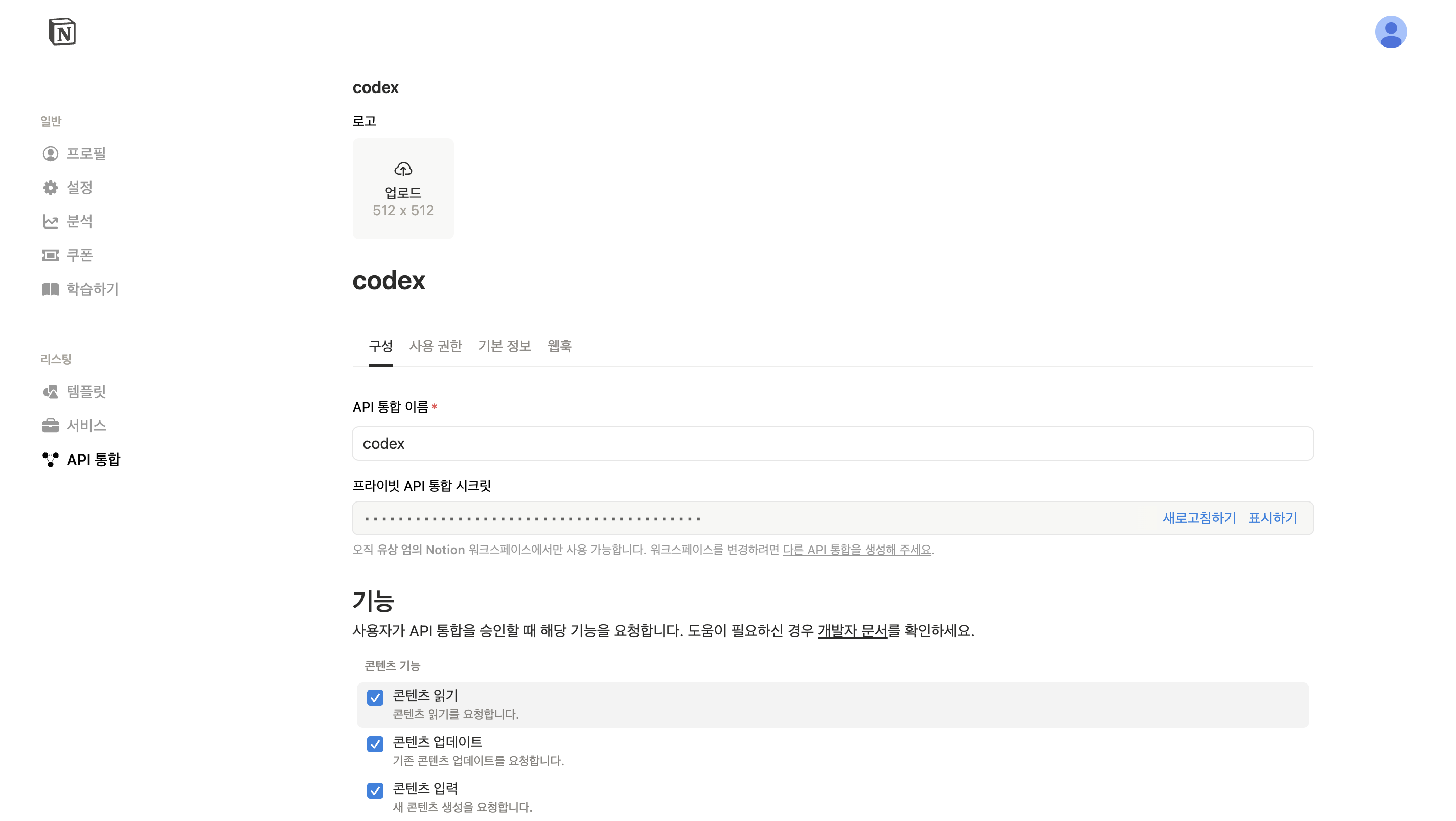 Notion API 통합 페이지에 접속해 API Key를 발급한다.