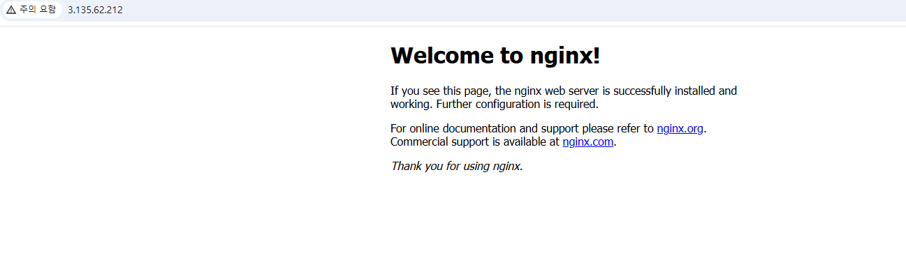 👉 80포트 설정해서 브라우저에 ipv4주소를 입력하게 되면, nginx가 켜지는것을 확인할수있다.