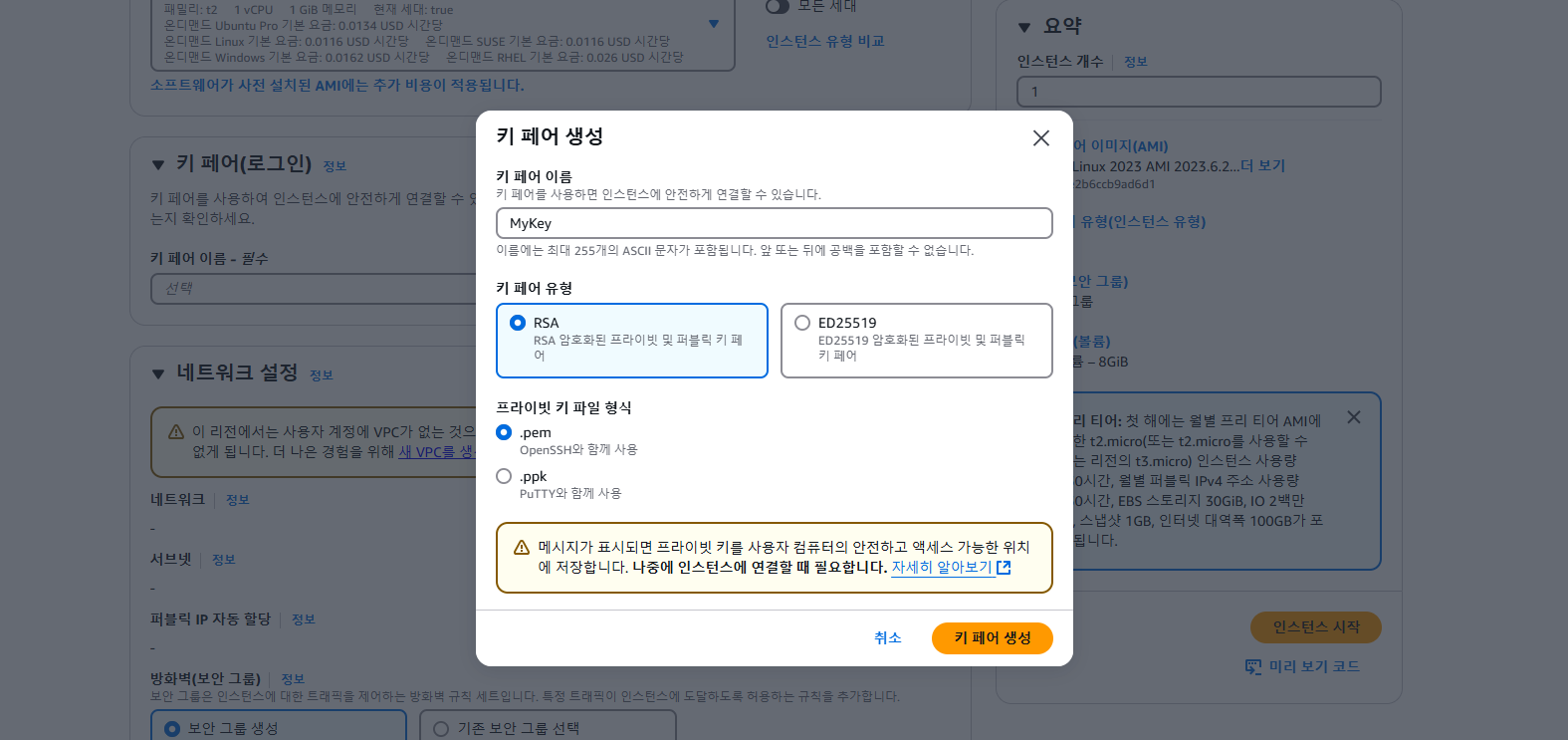 키페어는 원하는 이름으로 생성