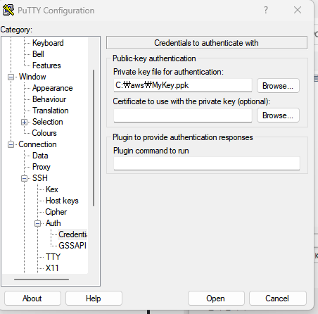 👉 ssh - auth - credentication 에서 Key ppk 를 불러오기