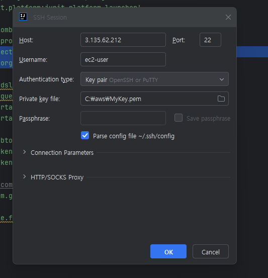 👉 인텔리제이에서 tool -> ssh 에서 이렇게 그대로 실행하면 쁘띠가 없어도 가능