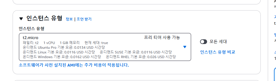 인스턴스 유형은 t2.micro 선택