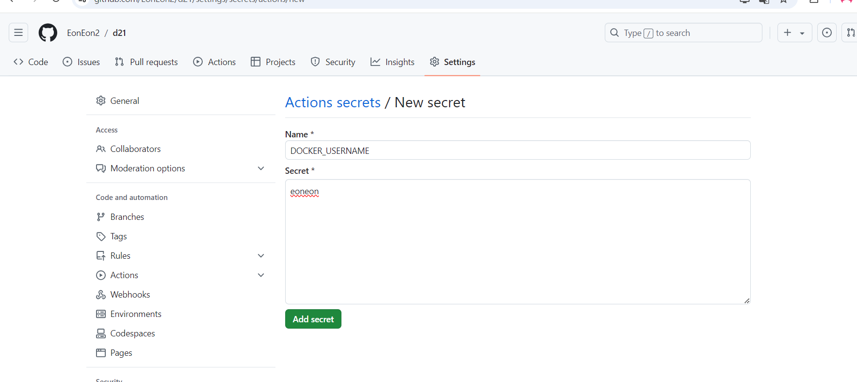 DOCKER의 토큰값도 똑같이 생성