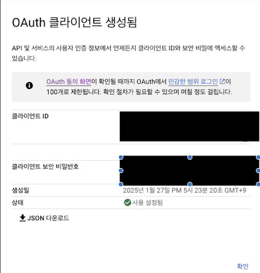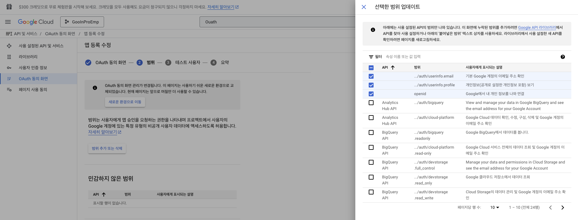 - Oauth동의화면에서 앱 개시 버튼 누르기
