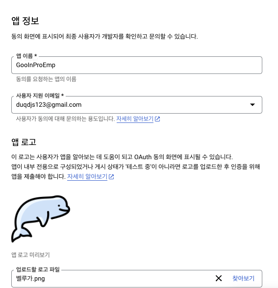 - 앱정보 및 앱 로고 설정, 아래 앱 도메인은 설정하지 않음