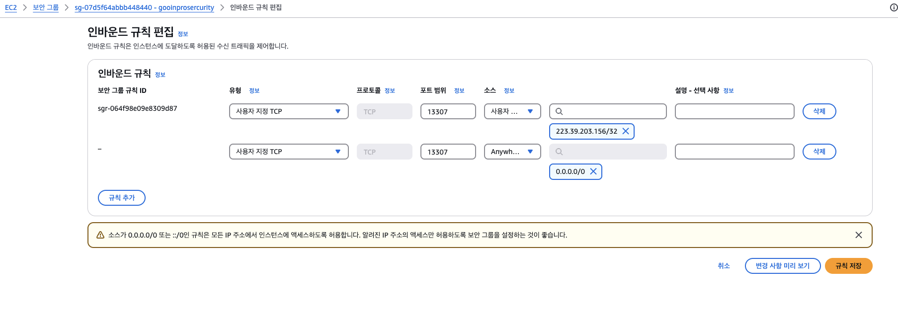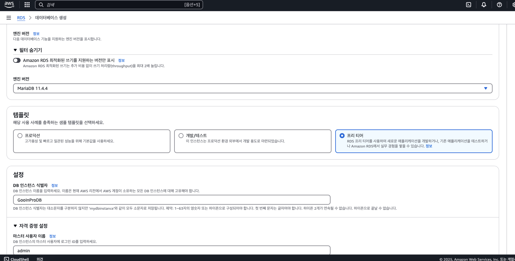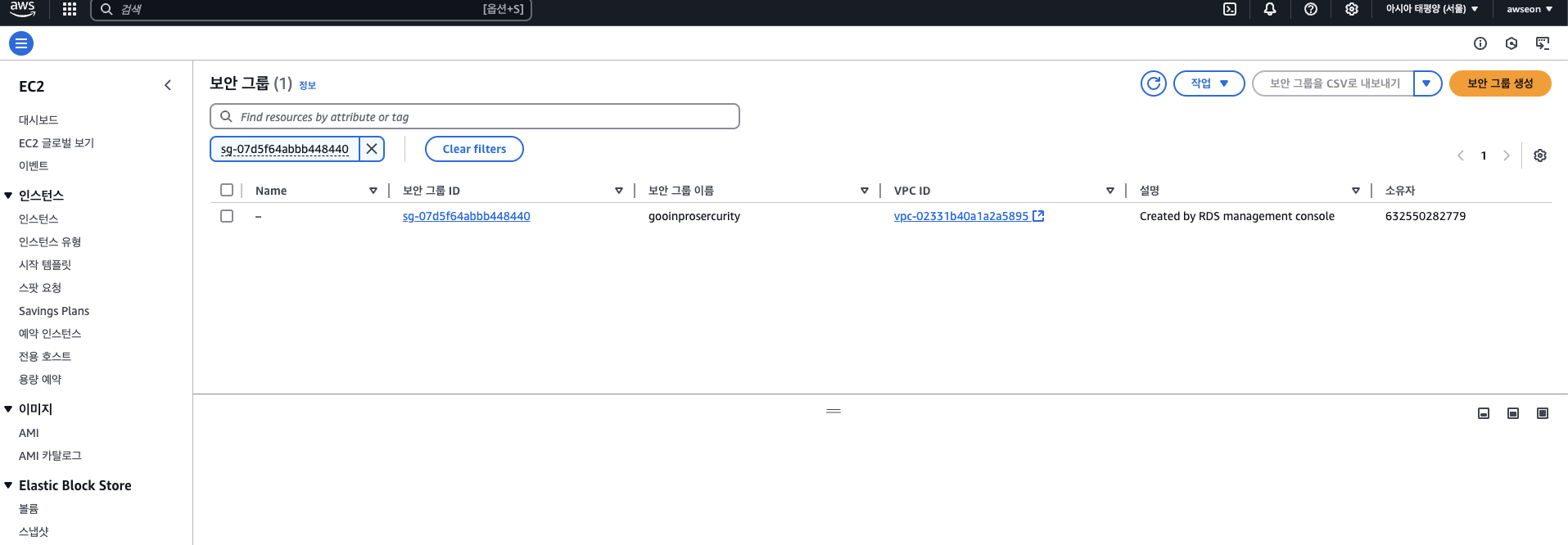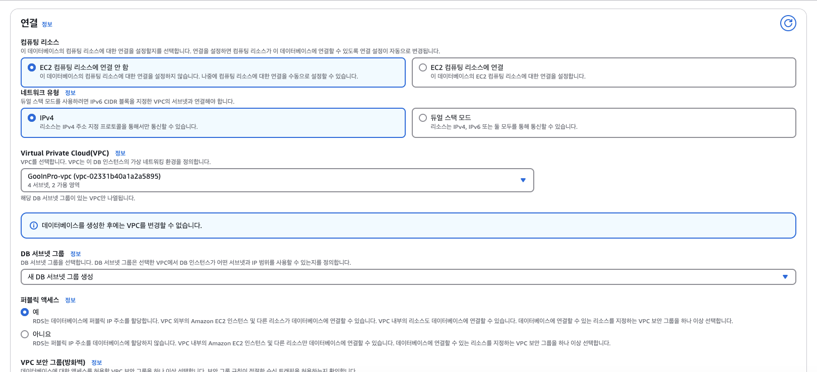 완료후에 rds 수정들어가서 파라미터 그룹 수정 필수.
