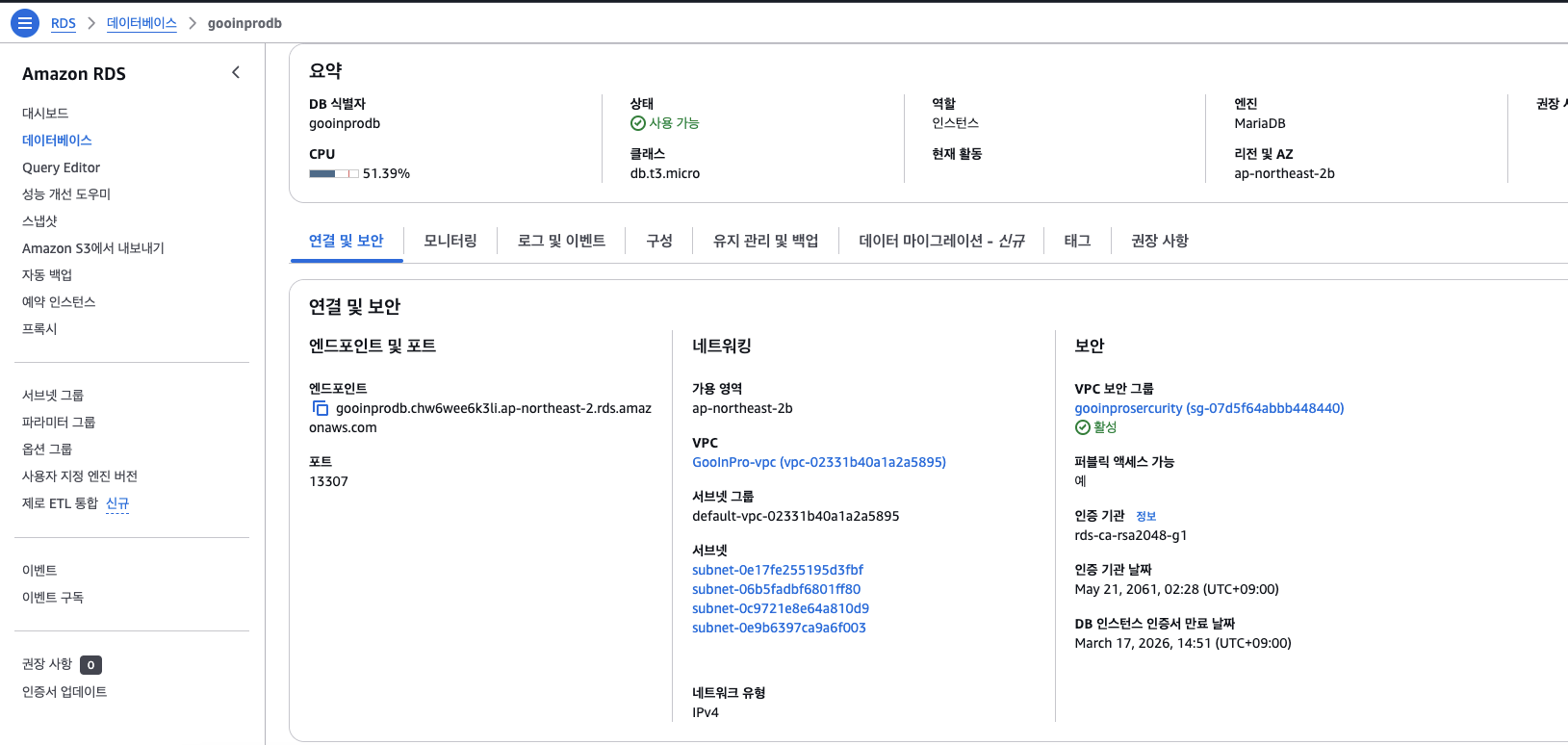 GRANT ALL PRIVILEGES ON gooinprodb.* TO 'gooinprodbuser'@'gooinprodb.chw6wee6k3li.ap-northeast-2.rds.amazonaws.com';